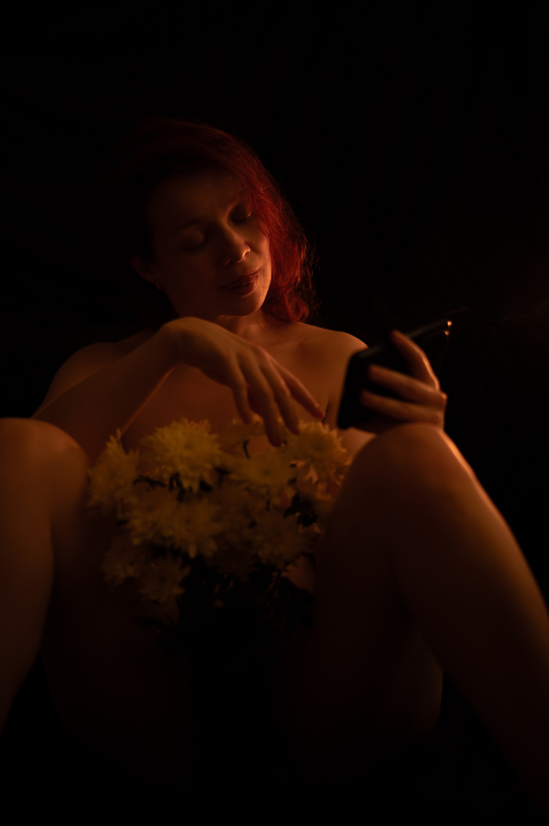 Здесь первые пробы сниматься через управление камерой с помощью телефона. Пробы света. И закрыть гештальт сняться голой с букетом)